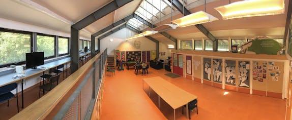 It also has a large indoor hall, equipped with games consoles, crafting areas, pool table, table football, air hockey.